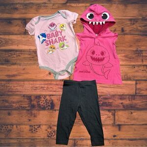 5 for $25🔥Baby Girl 12 Months Baby Shark Pink 3 Piece Outfit Set