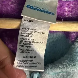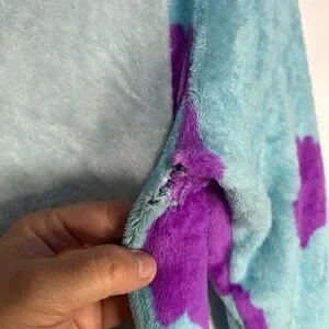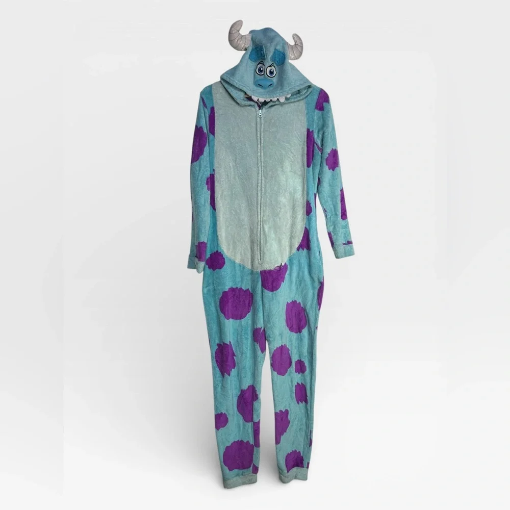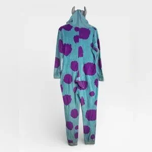 Disney Pixar Monsters, Inc. Sully Plush Pajama Jumpsuit Medium (8â10) â Fun and cozy character sleepwear inspired by Sulley from the beloved Pixar film Monsters, Inc. by Pixar and Disney. This kidsâ plush pajama jumpsuit features the iconic blue and purple spotted design of James P. Sullivan (Sully), making it perfect for fans of the movie. Made from soft, warm plush fabric, this one-piece pajama suit is great for bedtime, lounging, sleepovers, costume fun, or cozy movie nights. Sized Medium (8â10), it offers comfortable full-body coverage and playful character style kids will love. Please note: this jumpsuit has a few flaws, so please review all pictures carefully for condition details before purchasing.