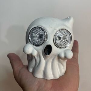 Add a hauntingly fun touch to your outdoor décor with the Halloween Cement Ghost Solar Decor, measuring 2.48 x 2.75 x 3.15 inches. This spooky little ghost is made of sturdy cement and features a charming, eerie design that lights up at night with a solar-powered LED glow. Perfect for placing on porches, patios, steps, or garden paths, it automatically charges during the day and illuminates at dusk for effortless ambiance. Weather-resistant and maintenance-free, this ghostly figure is great for Halloween decorating or as a festive gift for lovers of spooky season.
