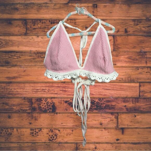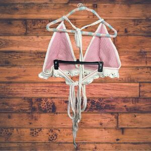 5 for $25🔥Handmade Crochet Pink & Off White Festival Bralette 3X (DD Cup)