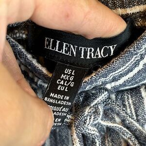 Elevate your summer wardrobe with these stylish Ellen Tracy linen blend shorts in size Large. Featuring a classic pinstripe pattern, these shorts offer a tailored look with a comfortable elastic waistband and cuffed hems. Perfect for casual outings or beach days, they combine breathable linen fabric with a flattering fit.