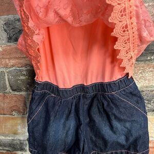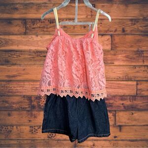 5 for $25🔥Limited Too Pink Lace & Denim Shorts Rompers Girls Size 6X