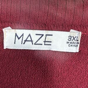 The MAZE Burgundy Pullover Crewneck Sweater in 3XL offers a perfect blend of cozy comfort and timeless style. Made from soft, high-quality fabric, this sweater features a classic crewneck design with a relaxed fit, ensuring all-day warmth and ease. The rich burgundy color adds a pop of sophistication, making it versatile for pairing with jeans, leggings, or skirts. Whether you're layering up for chilly days or lounging at home, this sweater provides a cozy, stylish option thatâs both flattering and comfortable.