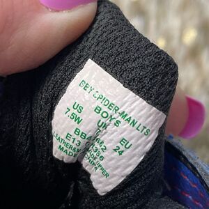 These Marvel Spider-Man Stride Rite sneakers for boys in size 7.5W (wide) are perfect for young superhero fans. Featuring a bold Spider-Man design, these sneakers are built for comfort and durability with a lightweight construction, cushioned insole, and easy hook-and-loop closure. Ideal for active play and everyday adventures, they combine style, practicality, and the excitement of Spider-Manās iconic look.