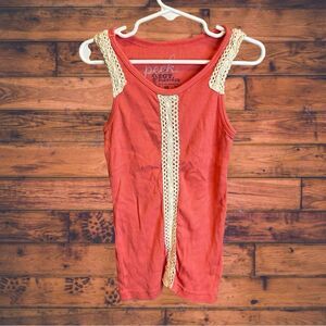 5 for $25🔥Peek Coral Ribbed Lace Knit Tank Top Girls Medium (6/7)