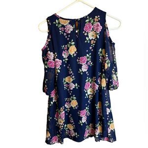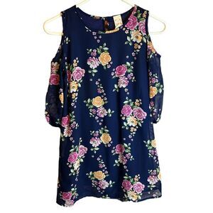 5 for $25🔥Size 12 Heart & Arrow Cold Shoulder Floral Navy Dress