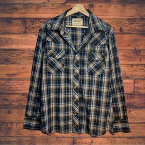 5 for $25🔥Wrangler Western Plaid Pearl Snap Button Front Shirt XL