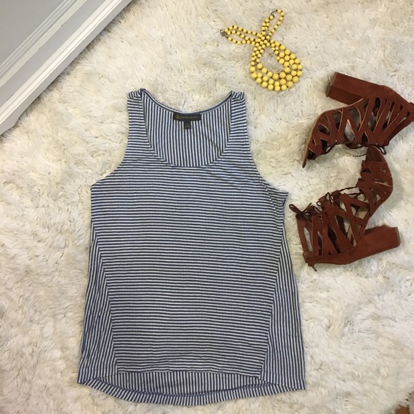 Multidirectional striped blue and grey flowy tank top from Express line Outback Red.