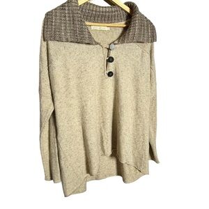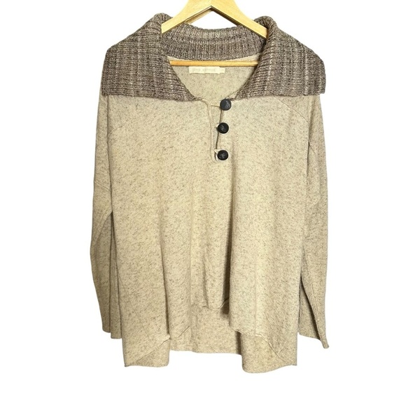 5 for $40 Cris Barros Tan Baggy Peter Pan Collar Three Button Pull Over P/S