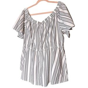 Lane Bryant Off The Shoulder Gray & White Striped Cinched Waist Tunic sz 16