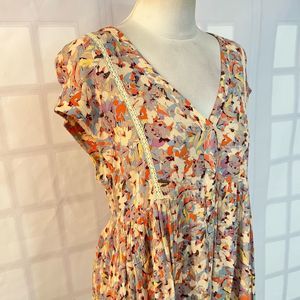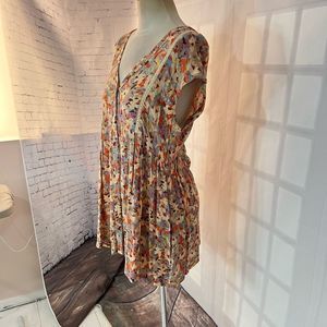 Vanessa Virginia Anthropologie tan floral tunic blouse with pockets size small
