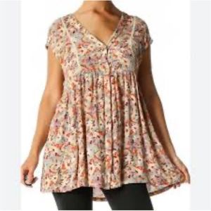 🔥5 for$25🔥 Vanessa Virginia tan floral tunic blouse with pockets size small