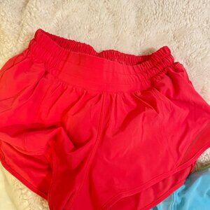 Lululemon Hotty Hot 5 pair 2.5” low rise shorts size 4.Some never worn. One or two pairs maybe wore once. All tags off. Probably I washed them all at one time or another. Pink, blue, lime, yellow, white