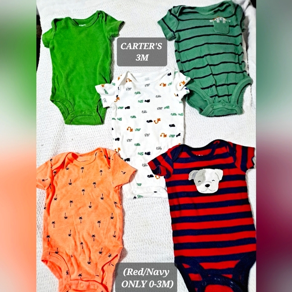 5 pc. Carter's bundle. All are sized at 3M. Red&Navy is the ONLY one sized at 0-3M.