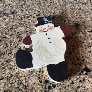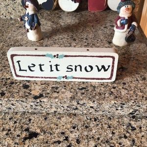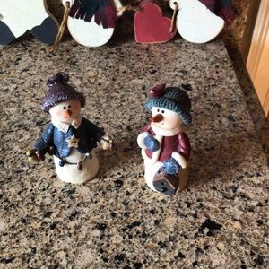 Adorable Christmas 5 piece decoration bundle features 2 resin snow people, wood snowmen hanging decoration, sign and snowman standing all in wood. Excellent condition and country rustic decor theme and colors🎄