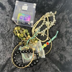 5 pounds of craft jewelry. Photos are examples of what you can find. This is designed to draw upon your creative side. Fixing jewelry and making jewelry and art or using beads to make things is the main reason I create these bags. This is saving beads from getting thrown away because they can be reused and made into other beautiful things! This is 5 pounds of miscellaneous bits and parts of jewelry that I will scoop from a tub of hundreds of pounds of craft jewelry!!! There are some wearables but the majority of this is for repurposing and re-creating art and other jewelry. Other folks break apart the jewelry and make new jewelry or reset missing stones or fix broken jewelry etc. None of this will be cleaned or untangled it’s just a bunch of jewelry with most of it broken and unmatching. This is for repurposing , harvesting, artwork and crafting. Because of the weight of this item, it cannot be bundled with any other items in my closet. This box will be 5 pounds of Vintage to current beads, jewelry, and findings for repurposing.