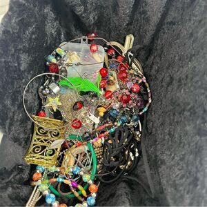 5 pounds of craft jewelry bundle vintage to current for repurpose. This is designed to draw upon your creative side. Fixing jewelry and making jewelry and art or using beads to make things is the main reason I create these bags. This is saving beads from getting thrown away because they can be reused and made into other beautiful things! This is 5 pounds of miscellaneous bits and parts of jewelry that I will scoop from a tub of hundreds of pounds of craft jewelry!!! Photos are samples of what you will. There are some wearables but the majority of this is for repurposing and re-creating art and other jewelry. Other folks break apart the jewelry and make new jewelry or reset missing stones or fix broken jewelry etc. None of this will be cleaned or untangled it’s just a bunch of jewelry with most of it broken and unmatching. This is for repurposing , harvesting, artwork and crafting. Because of the weight of this item, it cannot be bundled with any other items in my closet. This box will be 5 pounds of Vintage to current beads, jewelry, and findings for repurposing.