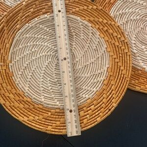 Add a touch of charm to your dining table with this set of 5 rattan wicker placemats. The round shape and subtle geometric swirl pattern throughout the plate adds a unique and stylish touch to any table setting. Made of high-quality rattan material (they smell like lovely wood), these placemats are fast-drying and perfect for both indoor and outdoor use. The set includes 5 placemats with a 12-inch diameter. I love how they are two-toned, with a medium tan surrounding a light beige interior.