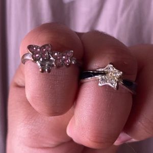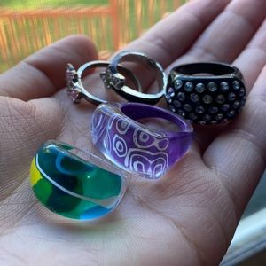 5 rings that are different sizes. 3 plastic rings and 2 metal rings.