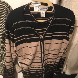 Nordic oatmeal and blue, sage, bill & crm., Pendleton sleeveless w/ matching zip up jacket, Ashley high collar cream