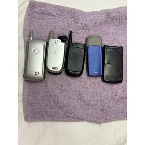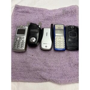 5 vintage group of old cellphones I have noidea or have any info on the phones seem to be in fair condition untested have any questions feel free to ask.