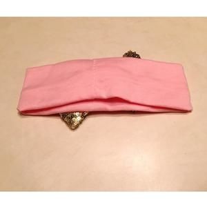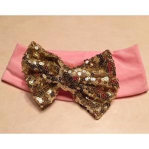 Stylish new handmade stretchable headband bow. Pink with a gold sequin bow. Goes along great with many outfits will fit 1yr-4yr. Belt: 18.5cm*6cm Bow: 12cm*9cm