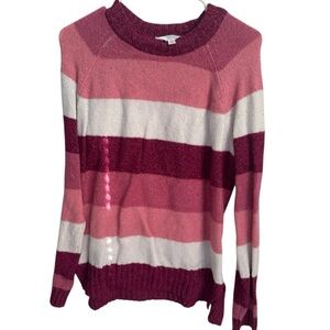 🌺 5 x 25 🌺 Time and Tru Women's Super Soft Pullover Pink Stripe Sweater SzM 8-10