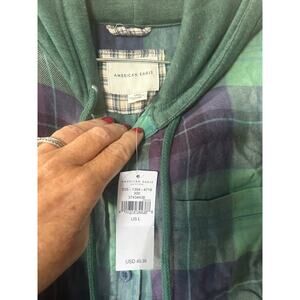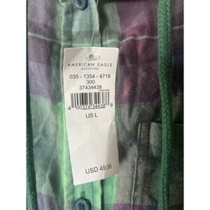 $50 American Eagle Cropped Distressed Flannel Hoodie Sweatshirt Sz L Plaid NWT