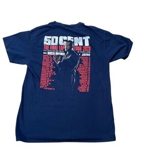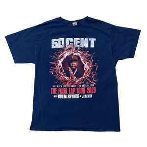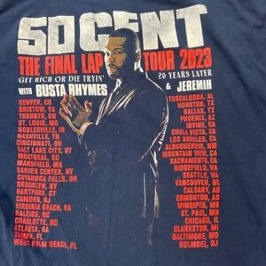 50 Cent t-shirt, Final Lap Tour shirt, Get Rich or Die Tryin, 50 Cent merch, 2023 concert tee, rap tee, hip hop shirt, tour cities tee, Busta Rhymes, Jeremih, Fruit of the Loom, unisex t-shirt, graphic tee, navy blue shirt, rap tee look, collector shirt, rare tour tee