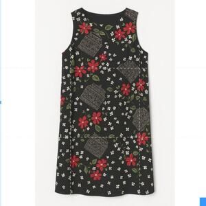 Studio Ease Sleeveless Shift Dress (Size 10) – black floral pattern, easy flattering fit.
