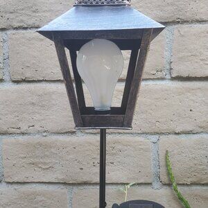 50" H, Solar LED Metal Lantern Garden Stake With Flickering Light Bulb