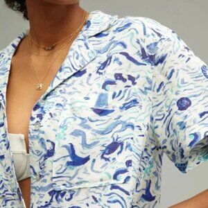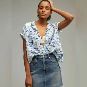 NWT MAEVE by ANTHROPOLOGIEβ Classic Surf Shirt in Blue Motif