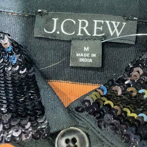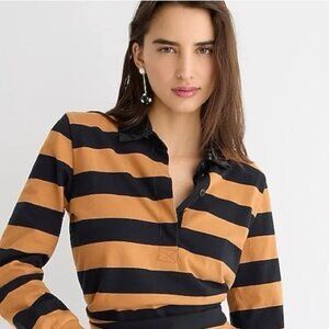 NWT J.Crew Sequin Collar Striped Rugby Top in Orange/Black Stripes