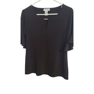 Carmen Marc Valvo Top Ribbed Lace Sleeves Stretch Off White Blouse