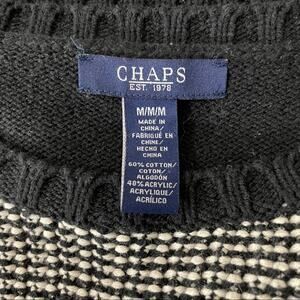 Chaps Knit Sweater Black White Crew Neck