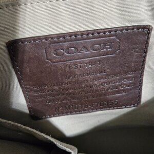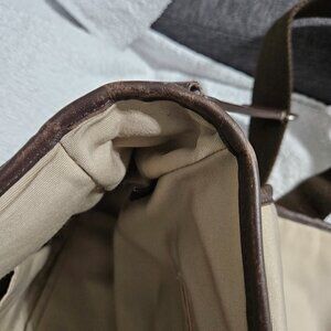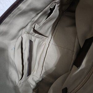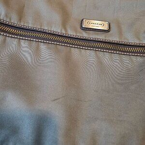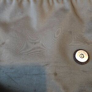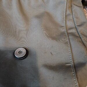 Great green bag with brown leather trim. Please see pictures as they are a part of the descripton. There are a few snags in the nylon (see pictures also), but she has a lot of life left in her. Does not have a hangtag.