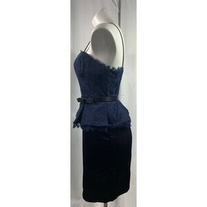 Kate Young Peplum Dress Blue Lace Spaghetti Strap