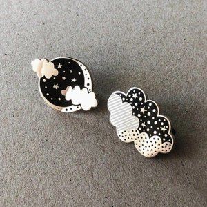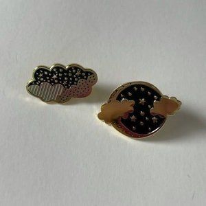 *50% OFF! Set of 2 Night Sky Clouds pins flair enamel celestial stars moon cloud