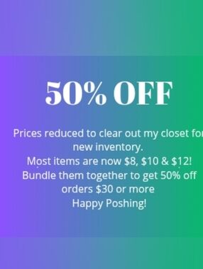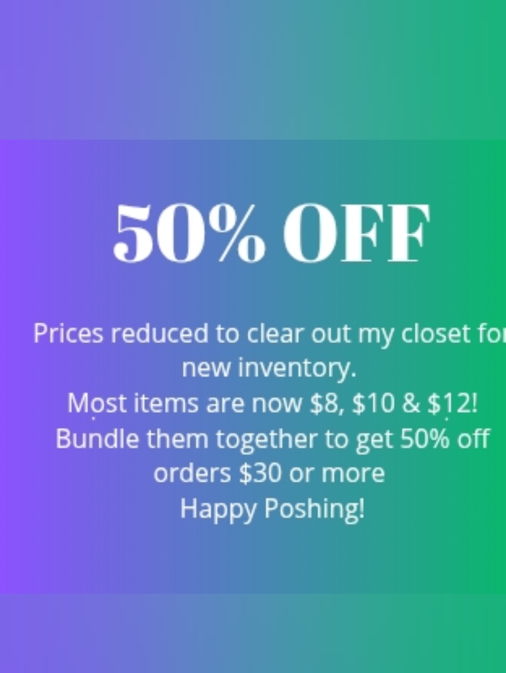 🔴🔴🔴50% off!!! Prices reduced to clear out my closet for new inventory. Most items are now $8, $10 & $12! Bundle them together to get 50% off orders $30 or more. Sale runs through Sunday, April 26th. Happy Poshing!