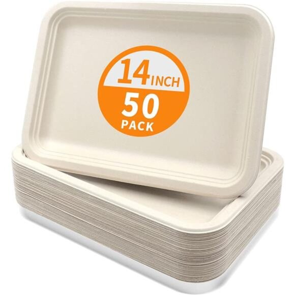 50 Pack 14 Inch Disposable Food Trays for Party, Large Paper Plates 14 inch