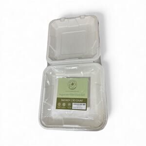 50 Pack 8x8 Compostable Clamshell Food Containers PFAS Free Bagasse Hinged Box