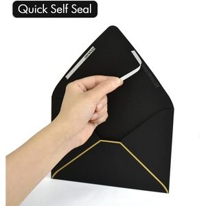 50 Pack A6 Black Invitation 4x6 Envelopes - Self Seal, V flap, 6.5 x 4.75 Black