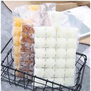The product is a set of 50 disposable ice-making bags, each capable of producing 24 ice cubes. These clear bags are made from food grade plastic and are designed for easy DIY cocktail ice cubes. Perfect for entertaining guests or simply enjoying a drink at home, this product offers a convenient and efficient way to make perfect ice cubes every time. Ideal for those who love to mix and mingle or enjoy a relaxing beverage, these ice mold bags are a must-have for any home bar.