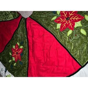 50" Poinsettia Velvet Sateen Pierced Quilted Embroidered Christmas Tree Skirt
