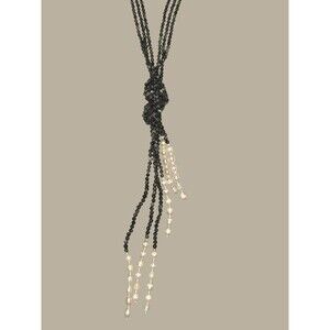 50" Sautoir with Larvikite and Pearl Tie Necklace Old Money Classic Luxury