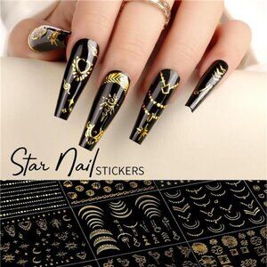 🧿50 Sheets Gold Nail Art Stickers for All Season Especially in Fall Winter: There are 50 sheets gold nail stickers for nail art, full gold design is suitable for fall and winter, especially in Christmas, this set contains most popular elements like line, lace, various floral & plants stickers, star & moon, cross, bowknot and even Christmas & Halloween Styles to cater your creative ideas for nail art design and DIY scrapbooking