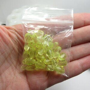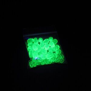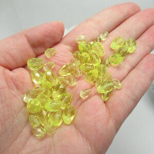 This listing is for 50, twenty five 5x7mm firepolished faceted teardrops and twenty five 7x10mm firepolished faceted teardrops. These are Czech Uranium glass beads. These beads glow under blacklight due to the Uranium used in making and coloring the glass. These beads glow brightly under blacklight. These beads are new and have never been used, but are old stock from the 1990's. They are a beautiful bright yellow with a slight green tint. All 50 beads 25 of each size will come mixed together in a bag as pictured.