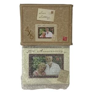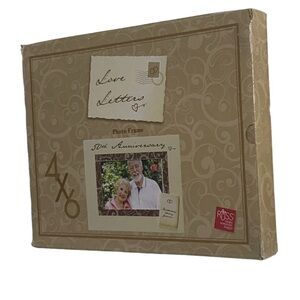 50th Wedding Anniversary Photo Picture Frame by Russ Berrie Love Letters holds 4 × 6 inch photo Freestanding Landscape Horizontal Orientation Earth Tones New in Box