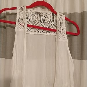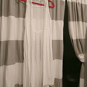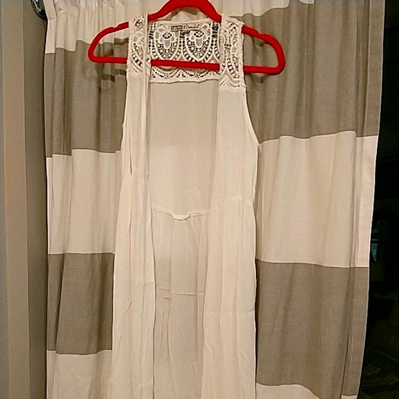 Linen feel...lightweight white open cardigan duster. Super cute with cowgirl boots or sandals or a casual wedding or to dinner for summertime. Cute little cover up. No stains or flaws and smoke free home