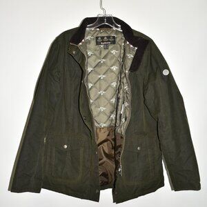 $500 Barbour Sandsend Waxed Cotton Utility Jacket Coat Dark Green 12 US 16 UK